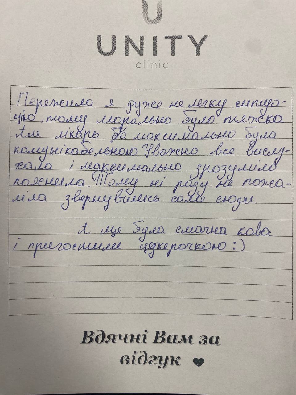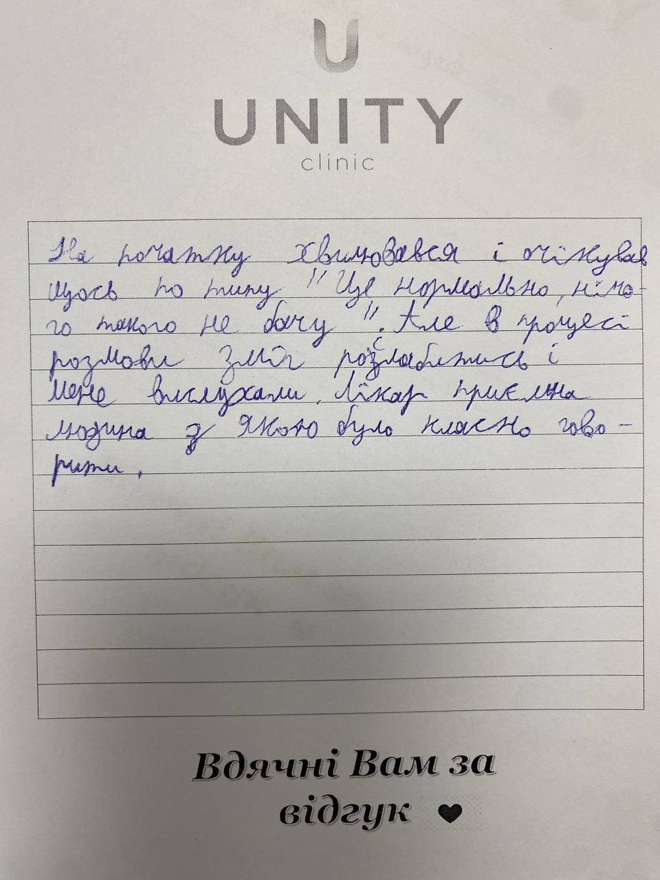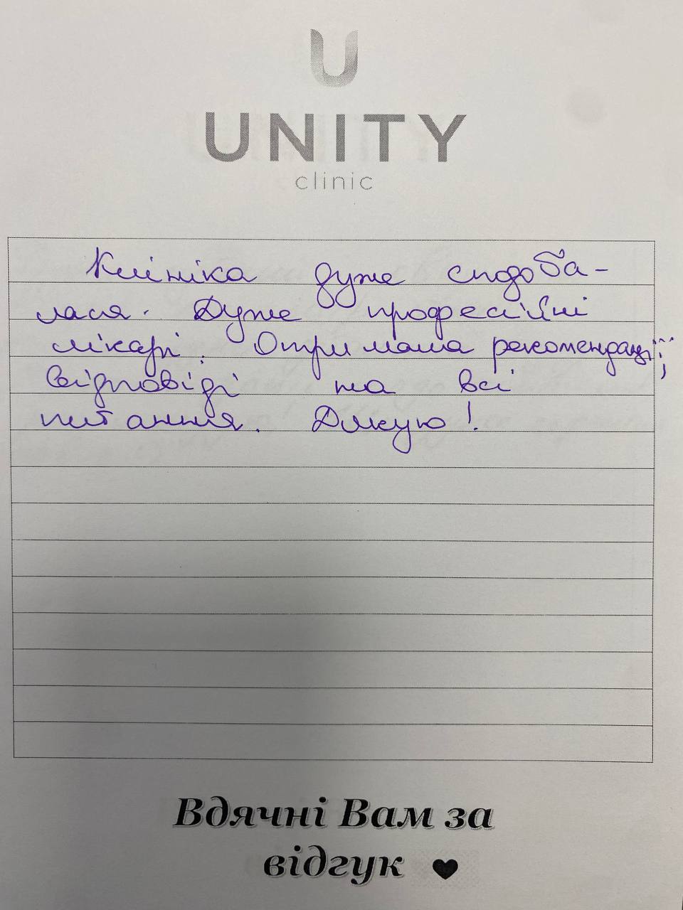 Уведи свої контактні дані для зв'язку зі спеціалістами клініки UNITY