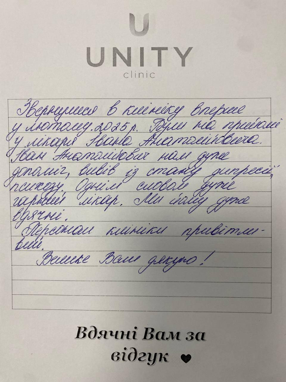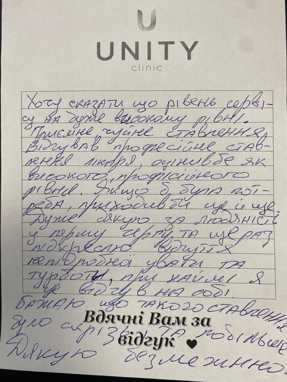 Я дуже радий, що звернувся саме до цієї лікарні. Атмосфера тут хороша і доброзичлива всі працівники ставляться з розумінням та співчуттям...